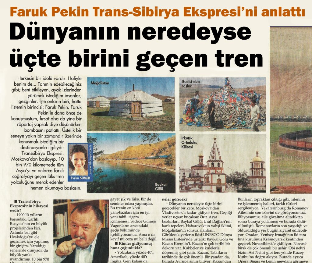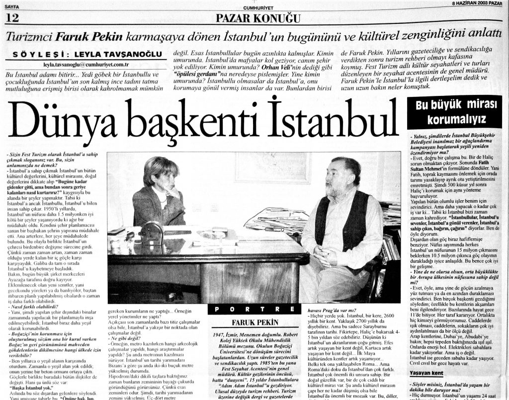 -“Kültüre Yolculuk-Faruk Pekin’den Dört Alternatif Rota”, Hürriyet Seyahat , 11 Haziran 2007.