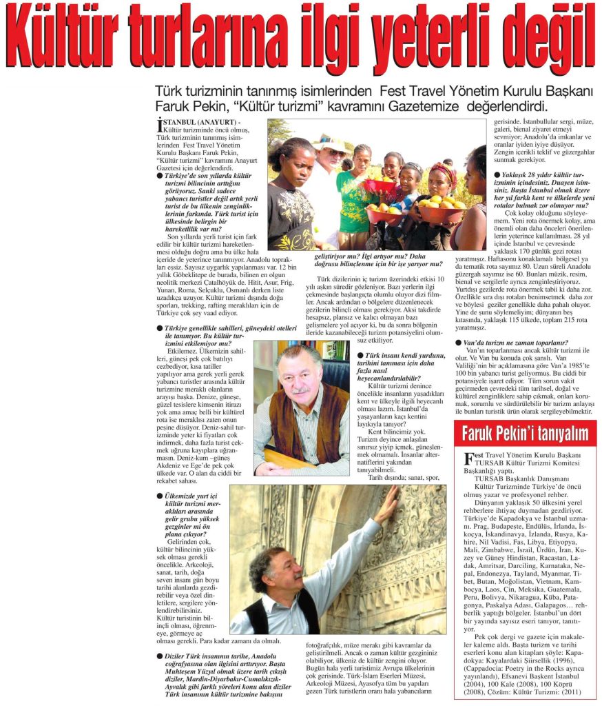 Cumhuriyet Gazetesi Seyahat Eki – Faruk Pekin: Kültür turunun duayeni / 2 Eylül 2009