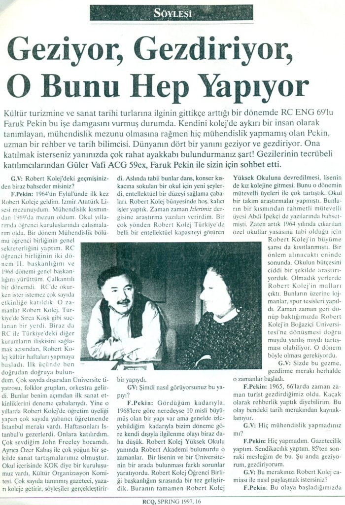 Cumhuriyet Gazetesi – Turizmci Faruk Pekin karmaşaya dönen İstanbul’un bugününü ve kültürel zenginliğini anlattı / 8 Haziran 2003